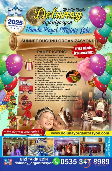Dolunay Organizasyon ile eşsiz bir sünnet düğünü organizasyonu planlamak için şimdi bizi arayın!..